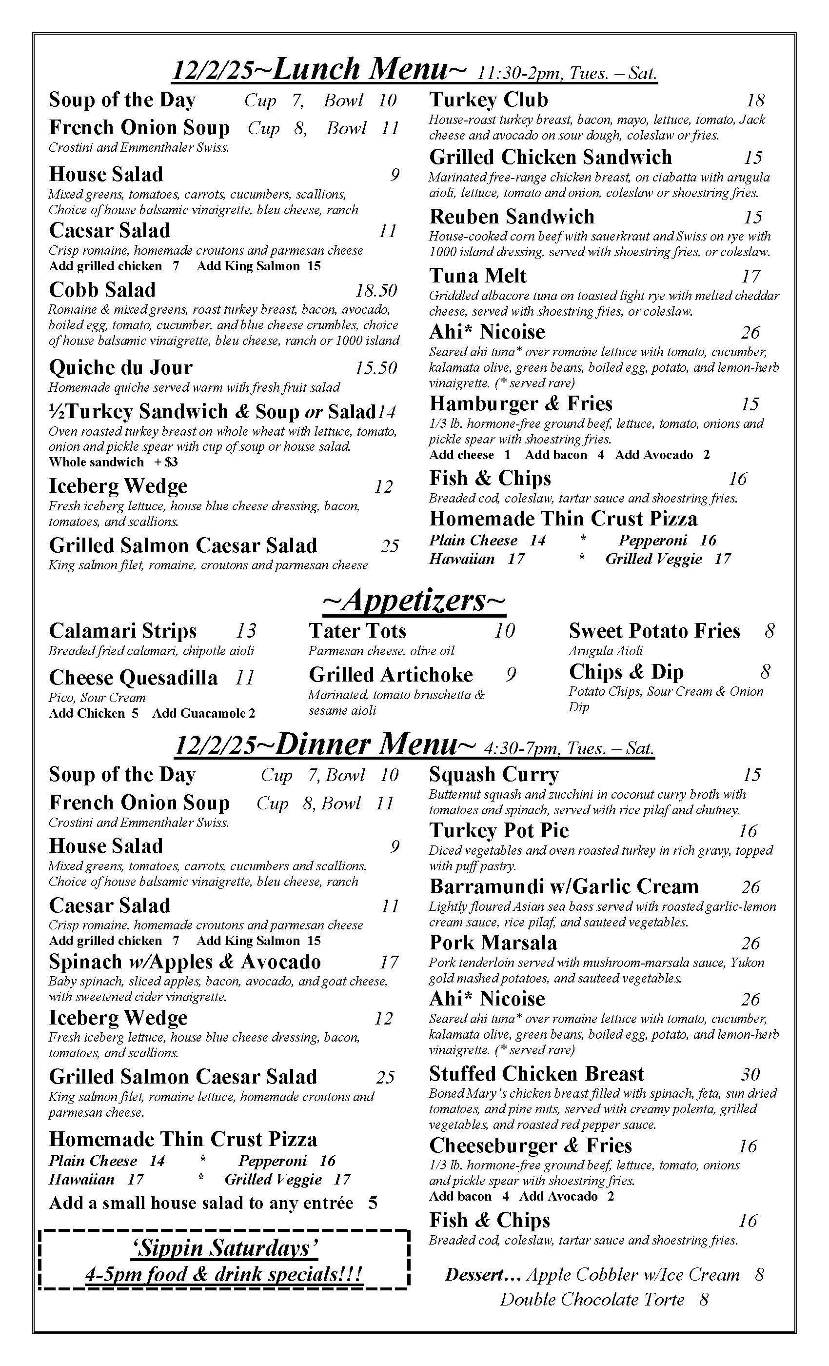Please call 625-7814 for Reservations or Take-out / Delivery orders